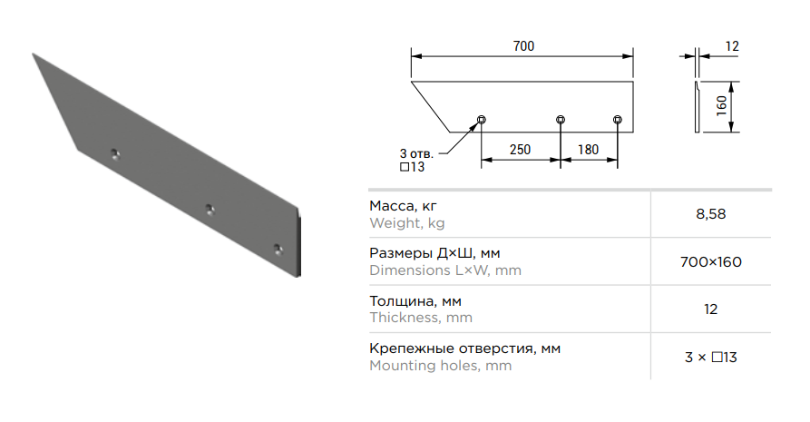 Лемех КГЮ.01.546К правый 700мм