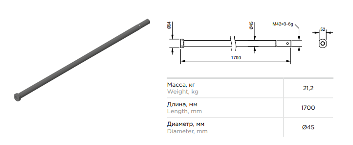 Ось БДТ-7 батареи 1700мм БДО.01.625